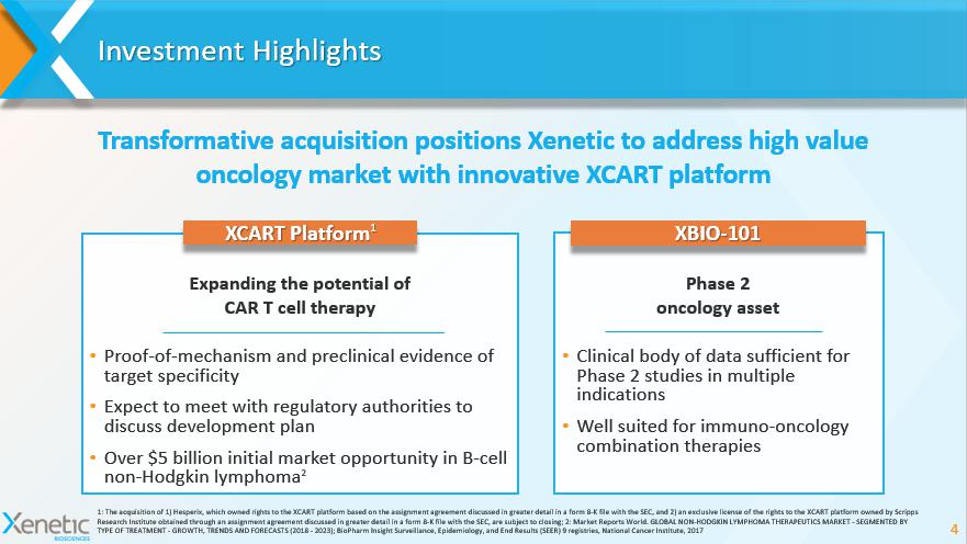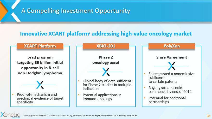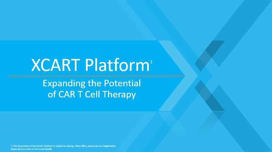 XCART Platform 1 Expanding the Potential of CAR T Cell Therapy 1: The Acquisition of the XCART platform is subject to closing. When filed, please see our Registration Statement on Form S - 4 for more details