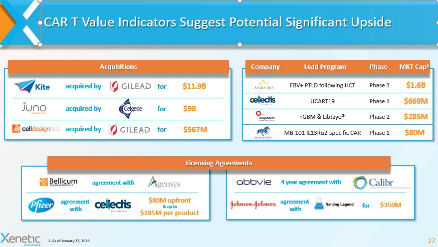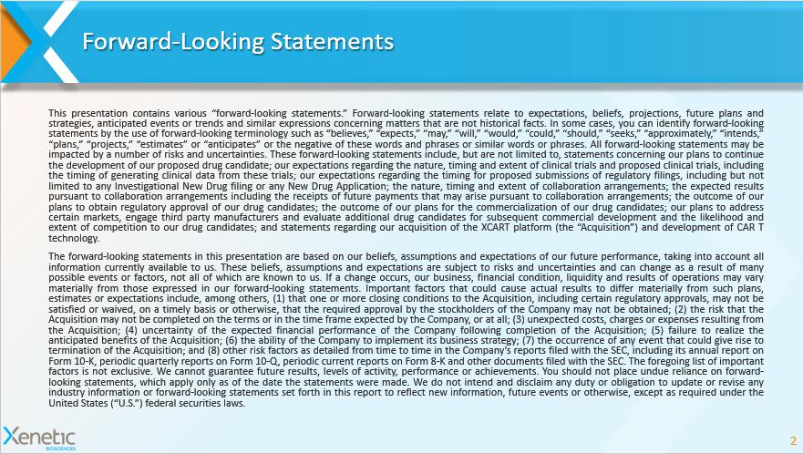 XCART Platform 1 Expanding the Potential of CAR T Cell Therapy 1: The Acquisition of the XCART platform is subject to closing. When filed, please see our Registration Statement on Form S - 4 for more details