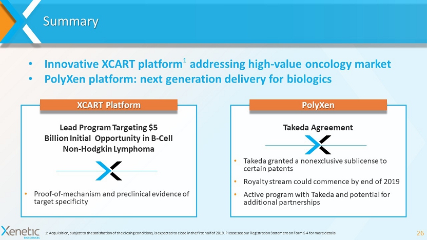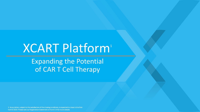 XCART Platform 1 Expanding the Potential of CAR T Cell Therapy 1: Acquisition, subject to the satisfaction of the closing conditions, is expected to close in the first half of 2019. Please see our Registration Statement on Form S - 4 for more details