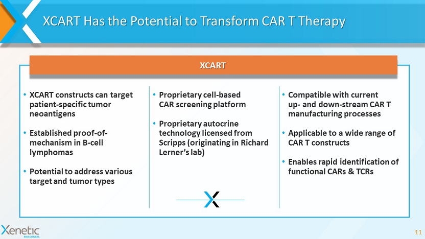 Enhancing lives with transformative therapies www.xeneticbio.com NASDAQ: XBIO Supplemental Information