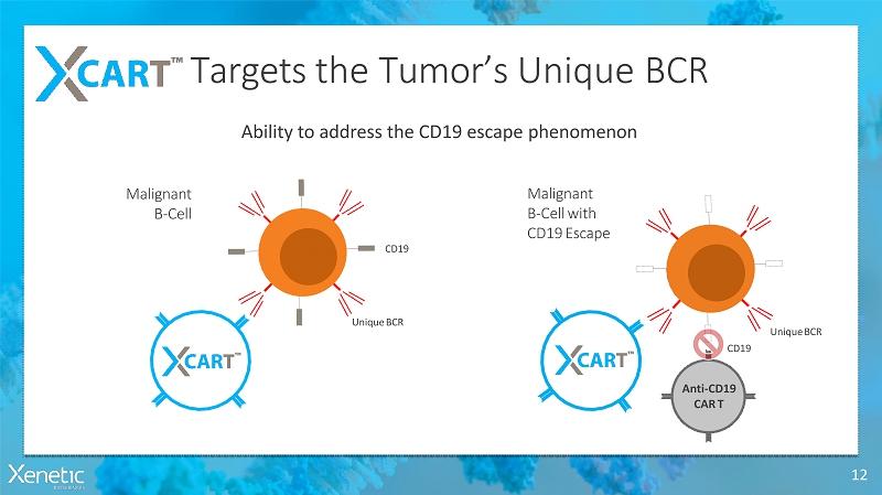 CD19 Escape: Emergence of CD19 - Tumor CellsResulting from Anti-CD19 Treatments, including CART 11 Estimated percentage of patients who relapse due to CD19escape 2 ~10-50% Ofpatientshavealowercount ofCD19-positiveB-Cellsdueto priortherapies 2 10-15% Incidence of CD19 escape is expected to increase withgrowing number of anti-CD19treatments Significant problem in treating B-Cellcancers, affecting the efficacy of currently approvedtherapies ~50% of CAR T treatedpatients relapse within 12months 1 Anti-CD19 CAR Ttreatment CD19 - tumor cellsemerging under selective pressure of anti-CD19treatment 1: Schuster SJ, et al. Presented at 60th American Society of Hematology Annual Meeting; December 1-4, 2018; San Diego, CA. Abstract 1684 2: Triangle Insights: Company Commissioned MarketReport CD19 + malignantB-Cells RemainingCD19 - malignantB-Cells Anti-CD19 CART Anti-CD19 CART Anti-CD19 CART
