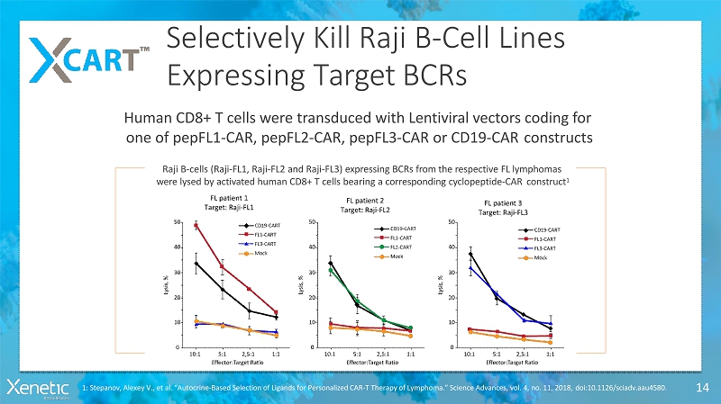 Only Targets MalignantB-Cells Potential for increased efficacy, safety and tolerability over currently approved CAR Ttherapies Malignant B-CellTargeted 13 Unique BCR Presents Tumor-SpecificTarget OnlyMalignant B-CellsEliminated NormalB-Cells areSpared CD19 CD19 UniqueBCR UniqueBCR NormalB-Cell NotTargeted