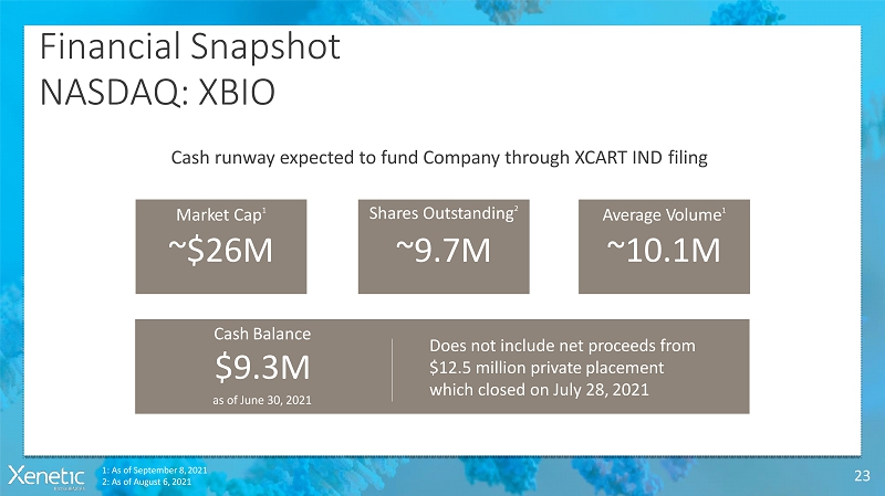 Expanding the Potential of CAR T CellTherapy NASDAQ:XBIO xeneticbio.com InvestorPresentation September 2021